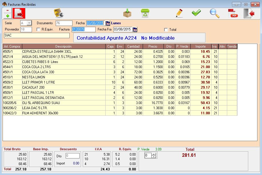 Gestió per controlar tota l'empresa: comandes clients, plantilles d'albarans, sèries d'albarans, devolucions i abonaments, viatges i rutes, centres de fabricació , Repartidors, facturació, lots, etiquetes traçabilitat, control venciments i cobraments, remeses bancàries normativa SEPA. Magatzem, inventari, comandes a proveïdors, ràpida entrada de les factures rebudes, control de preus segons el marge comercial.