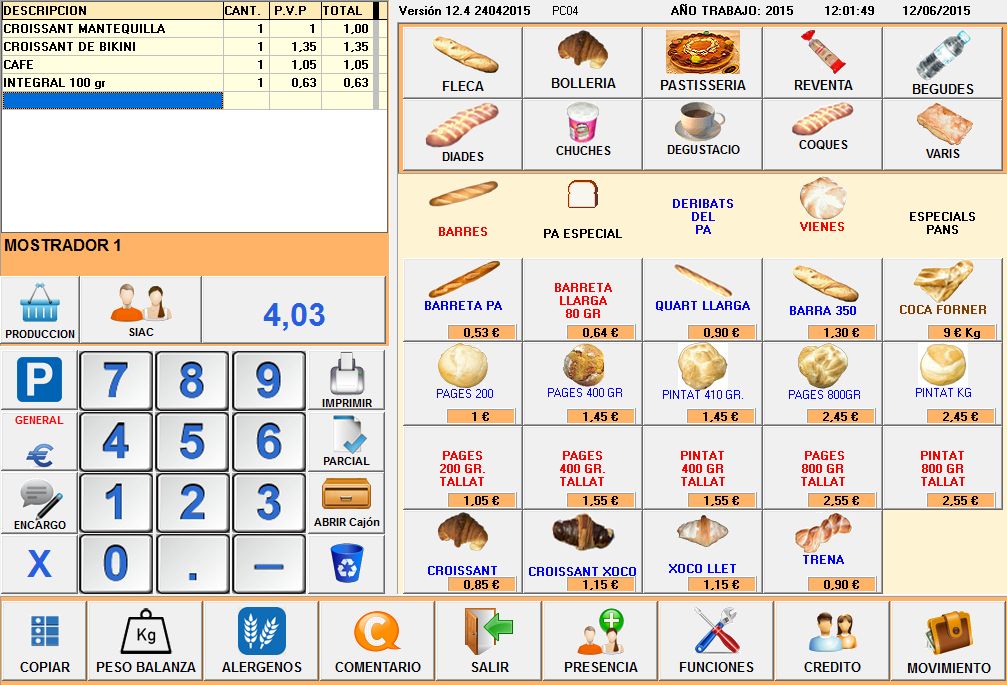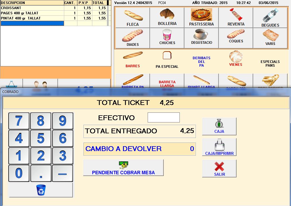 TPVWIN Programa desenvolupat per gestionar el punt de venda a través d'una Pantalla Tàctil . En ella disposaràs de totes les opcions necessàries per gestionar la fleca pastisseria o cafeteria, de forma fàcil i eficient.